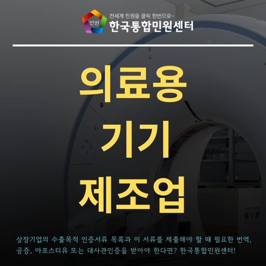 오늘은 의료용 기기 제조업 상장기업의 수출 목적 서류 목록과