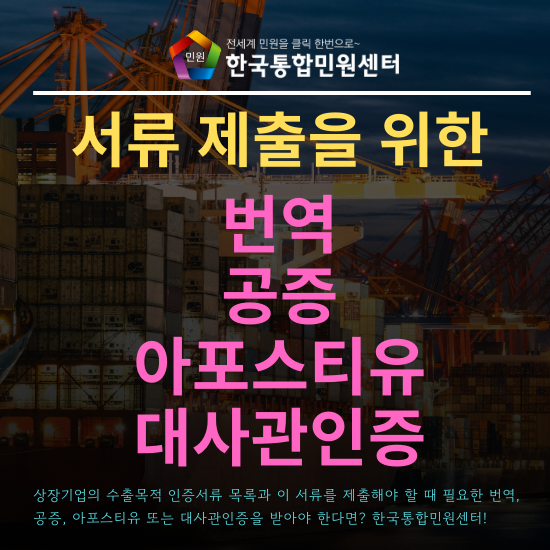 한국통합민원센터는 해외 수출을 위해 제출하는 법인·수출서류 등