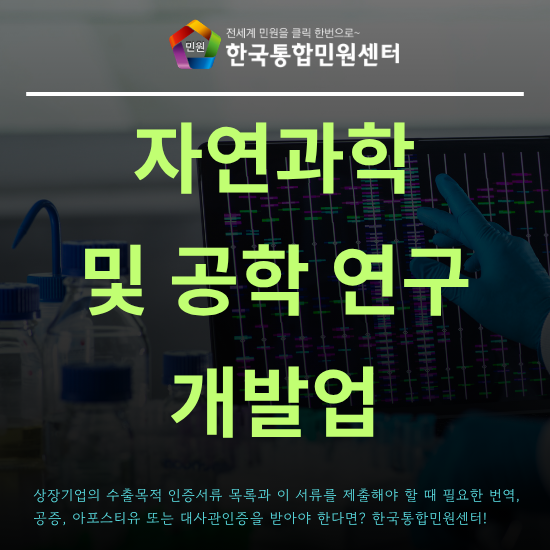오늘은 자연과학 및 공학 연구개발업 상장기업의 수출 목적 서류 목록과