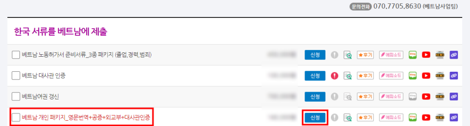 (*서류에 대한 베트남어번역, 공증촉탁대리, 외교부인증, 베트남대사관인증까지 원스톱으로 진행하도록 구성된 옵션)