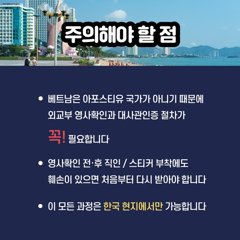 베트남 현지에서만 대사관인증이 가능하니 이 점 유의해 주세요