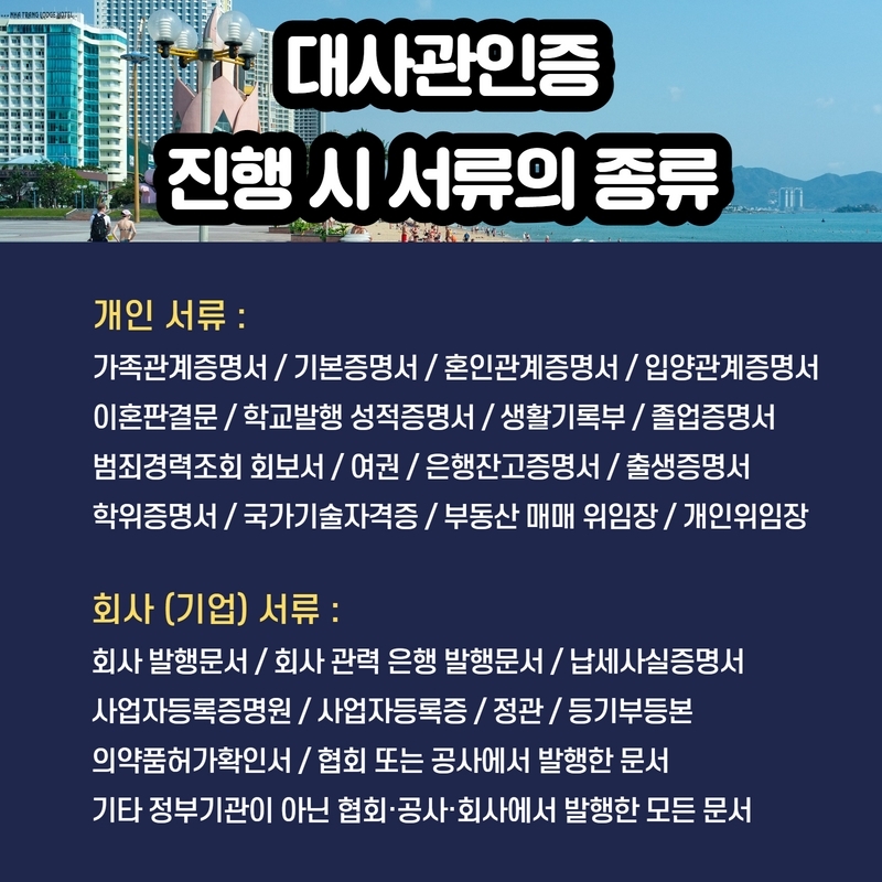베트남 서류를 한국 포함 전 세계 모든 국가에 제출도 가능합니다!)