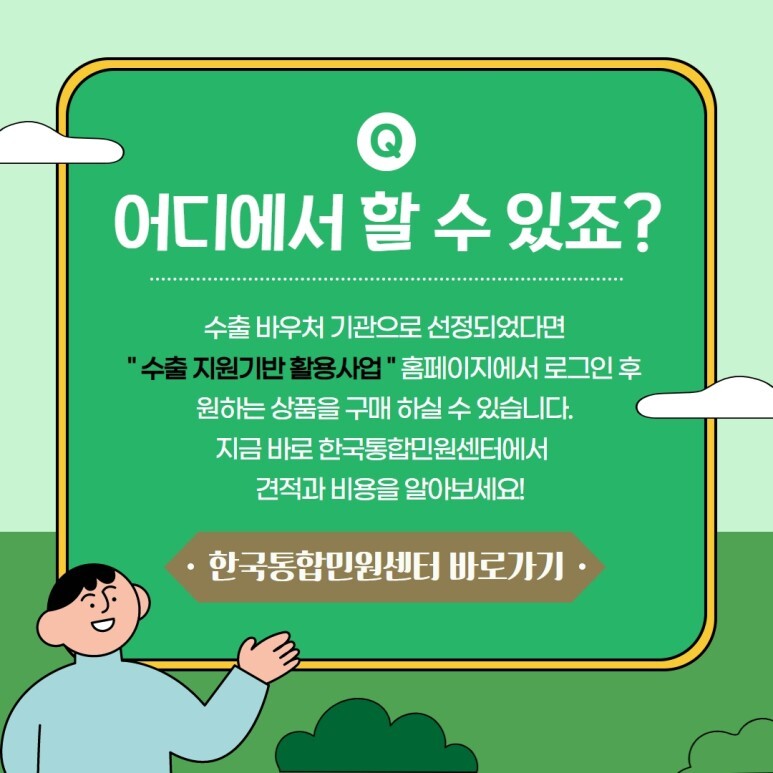위 사진을 누르시면 한국통합민원센터의 수출바우처 홈페이지로 연결됩니다.