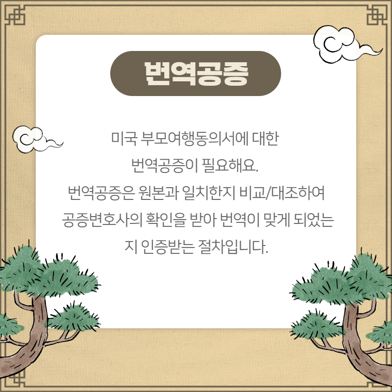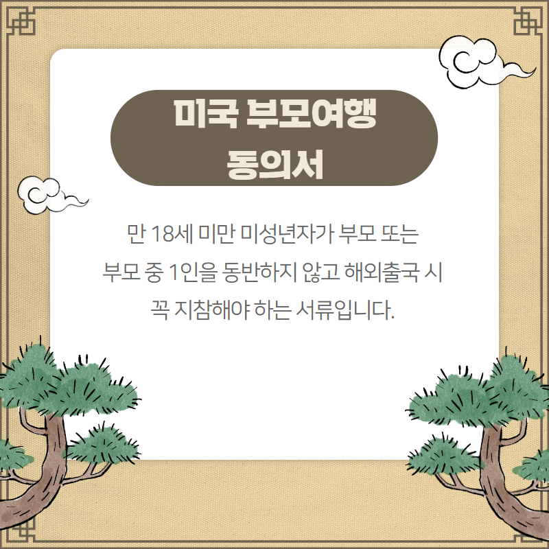 대상 연령은 만 18세 미만 미성년자이고 미국 부모여행동의서니까 영어로 번역하셔야 됩니다.