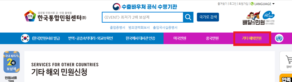 2. 홈페이지 우측 상단 '기타 해외 민원' 클릭