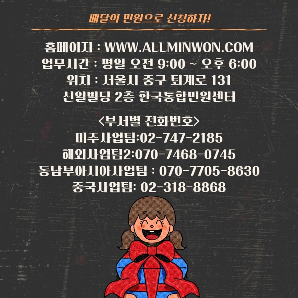 미주 사업 팀(미국, 캐나다) : 02-747-2185, apo@allminwon.com