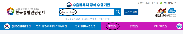 - [미국 시민권자] 검색 또는 [미국민원] 클릭 후 필요한 옵션을 찾아주세요