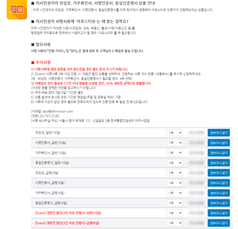 현재 미시민권자의 서류를 대량으로 신청하는 경우 대량 건 할인을 해드리고 있으니