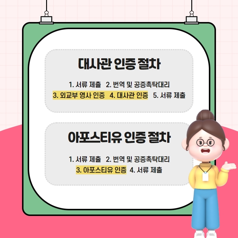 바로 대사관 인증 / 아포스티유 인증 절차가 필요합니다!