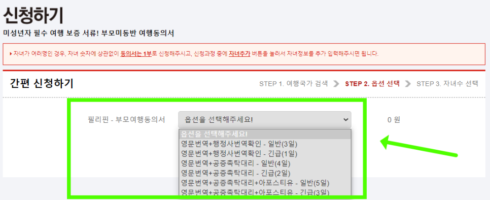 2. 부모 중 한 분만 자녀와 동행할 경우