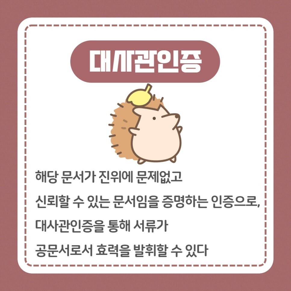 한국에서 받은 서류가 해외에서도 공문서로 효력을 발휘할 수 있다는 것이죠!