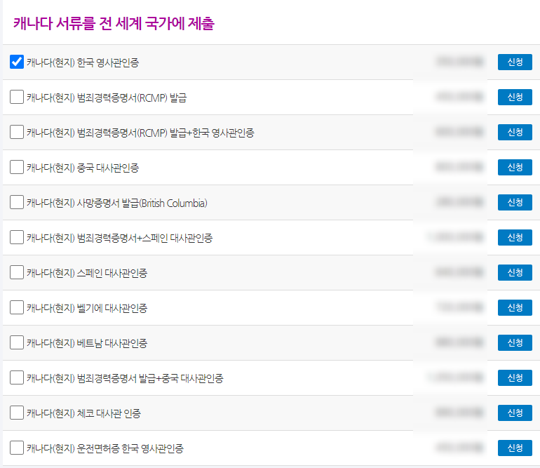 - 한국에 제출할 서류를 캐나다에서 서류 발급받기