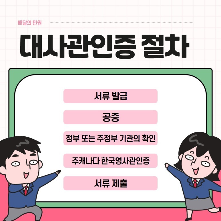 특정 절차인 '대사관인증'을 받아야 합니다