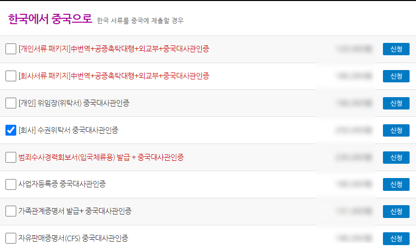 - 검색창에 [수권위탁서 중국대사관인증] 검색 또는
