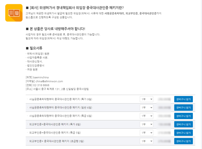 [중국민원] 클릭 후 필요한 옵션을 찾아주세요