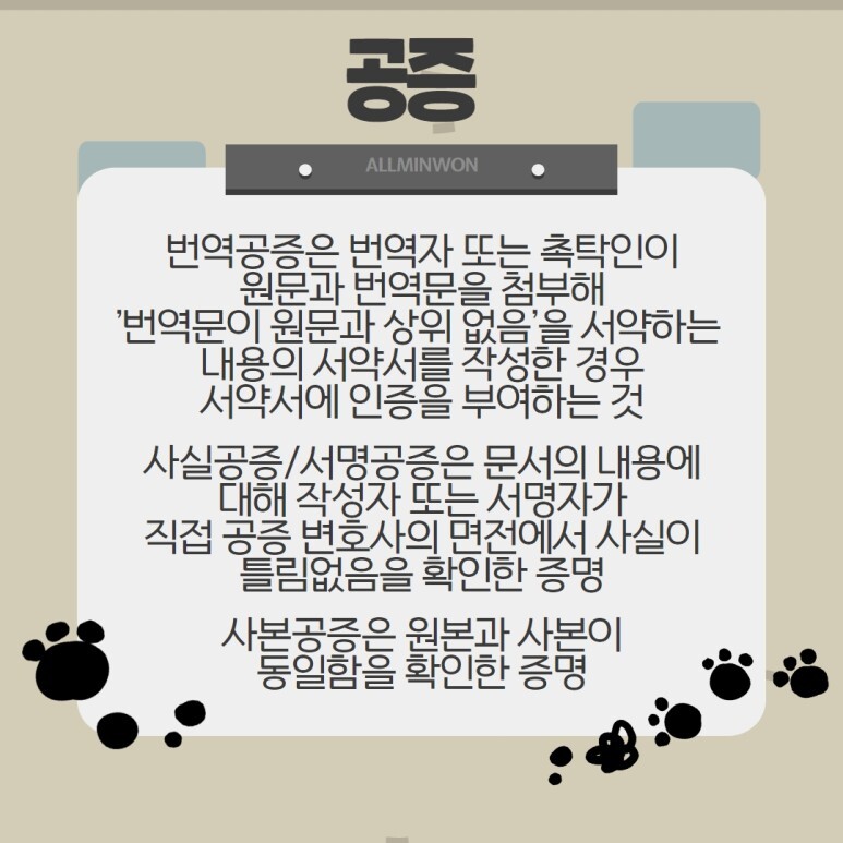 공증의 경우 사실공증, 사본공증 그리고 번역공증으로 나뉘는데