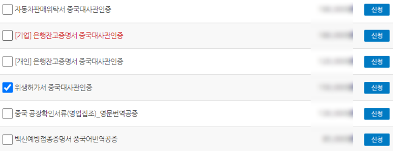 [중국민원] 클릭 후 필요한 옵션을 찾아주세요
