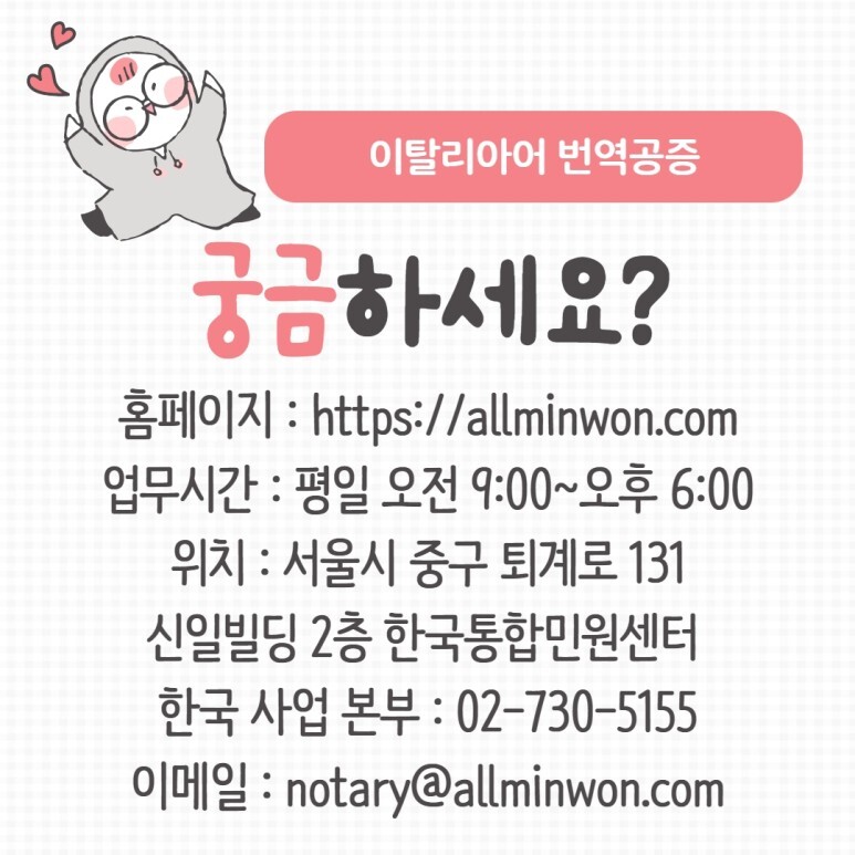 여기까지가 이탈리아어 번역공증에 대한 내용이었습니다