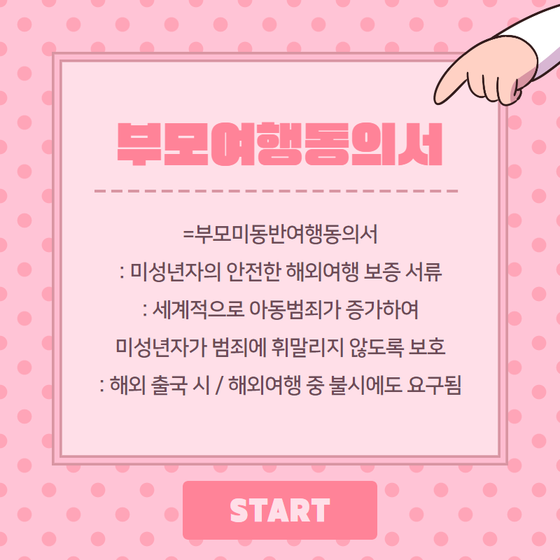 - 반드시 부모가 부모여행동의서를 직접 작성합니다.