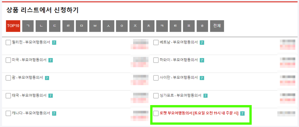 토요일 오전 11시 내로 "로켓 부모여행동의서"를 신청하실 경우