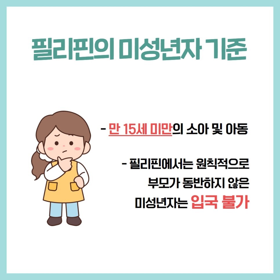 오늘은 필리핀에 미성년자가 방문할 경우 필요한