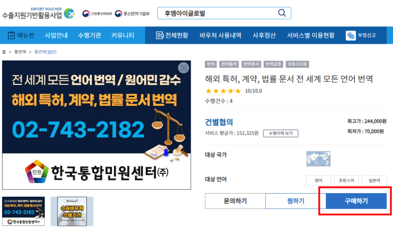 한국통합민원센터에서 수출 바우처를 이용하여