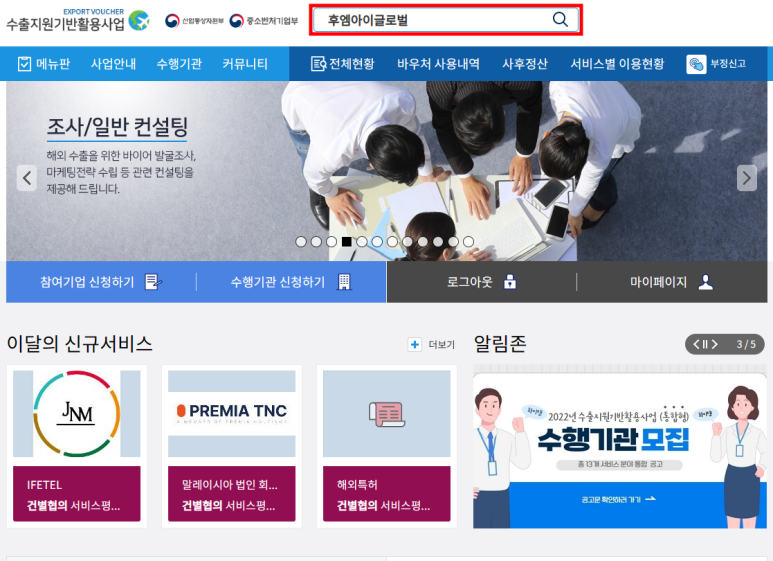 1) 홈페이지에서 후엠아이글로벌 검색
