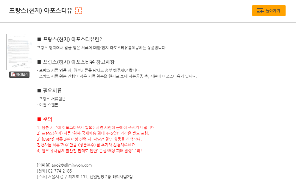 2. 프랑스 아포스티유를 검색해주세요