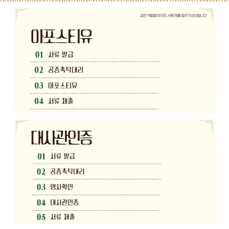 단, 아포스티유의 경우 서류를 주고받는 국가 모두