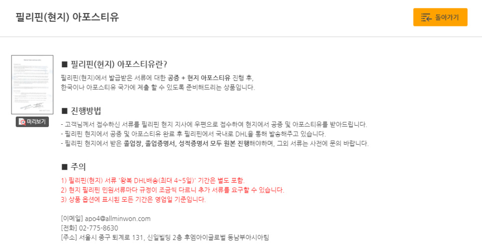 아포스티유까지 모든 절차 대리 업무를 진행하고 있습니다.