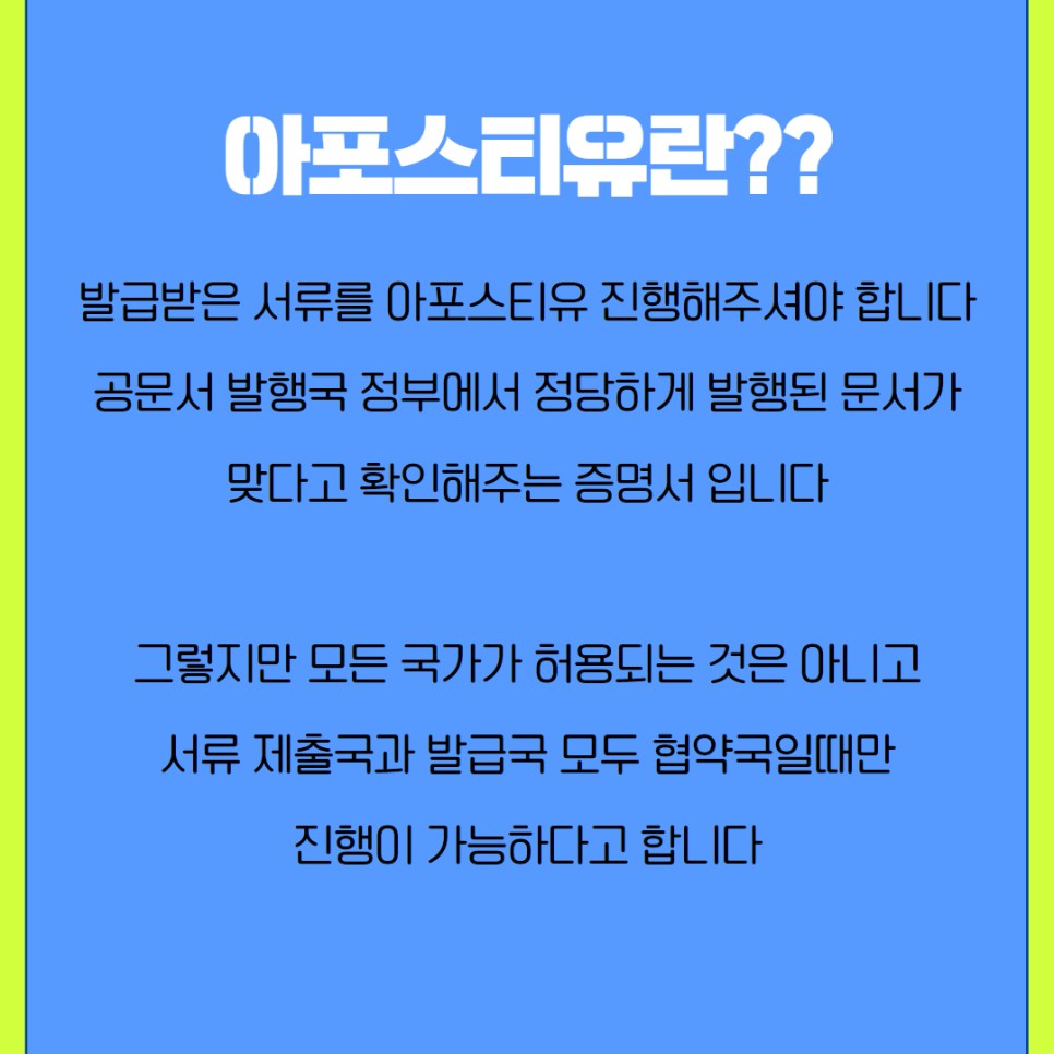 발급받은 서류를 아포스티유 진행해주셔야 합니다 !