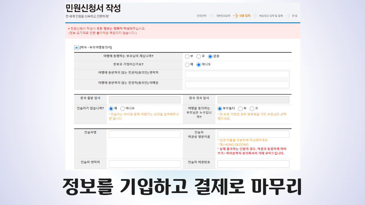 위 서류는 반드시 미성년자 여행 보증서류의 역할을 해주므로 챙겨야 합니다.
