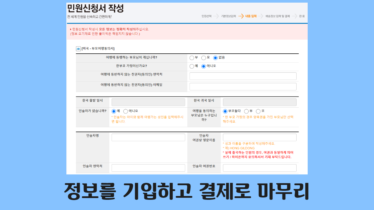 한 부모 가정인 경우, 부모 미동반 여행 동의서의 발급까지 알려드리도록 하겠습니다.
