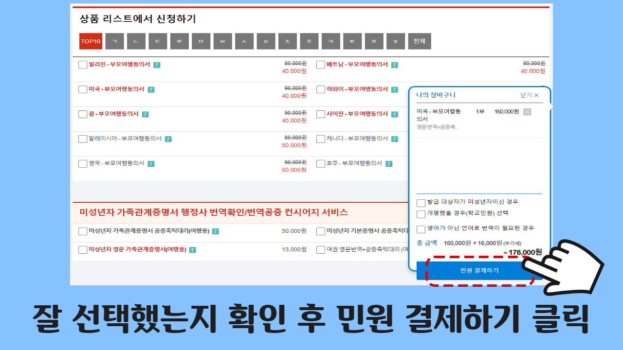 위에서 설명드린 일반적인 서류와 달리, 친권 보유자, 여행 동행자, 여행 국가 등