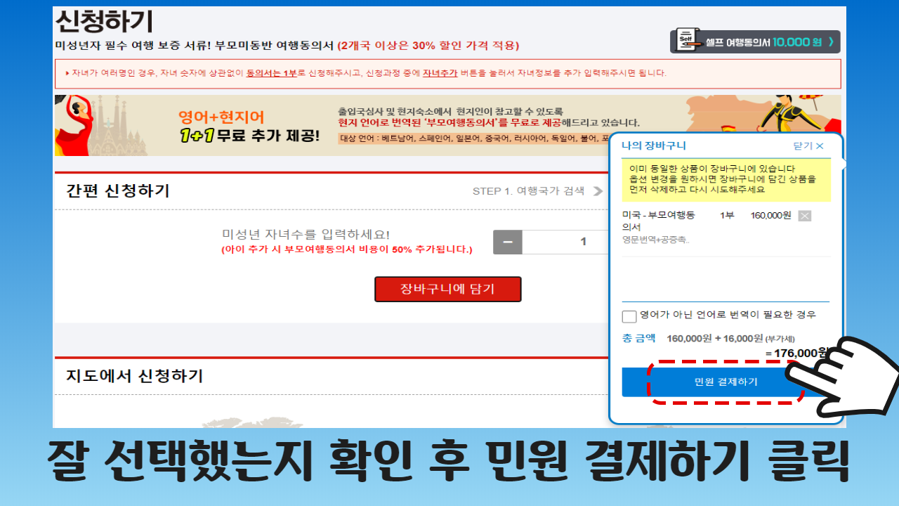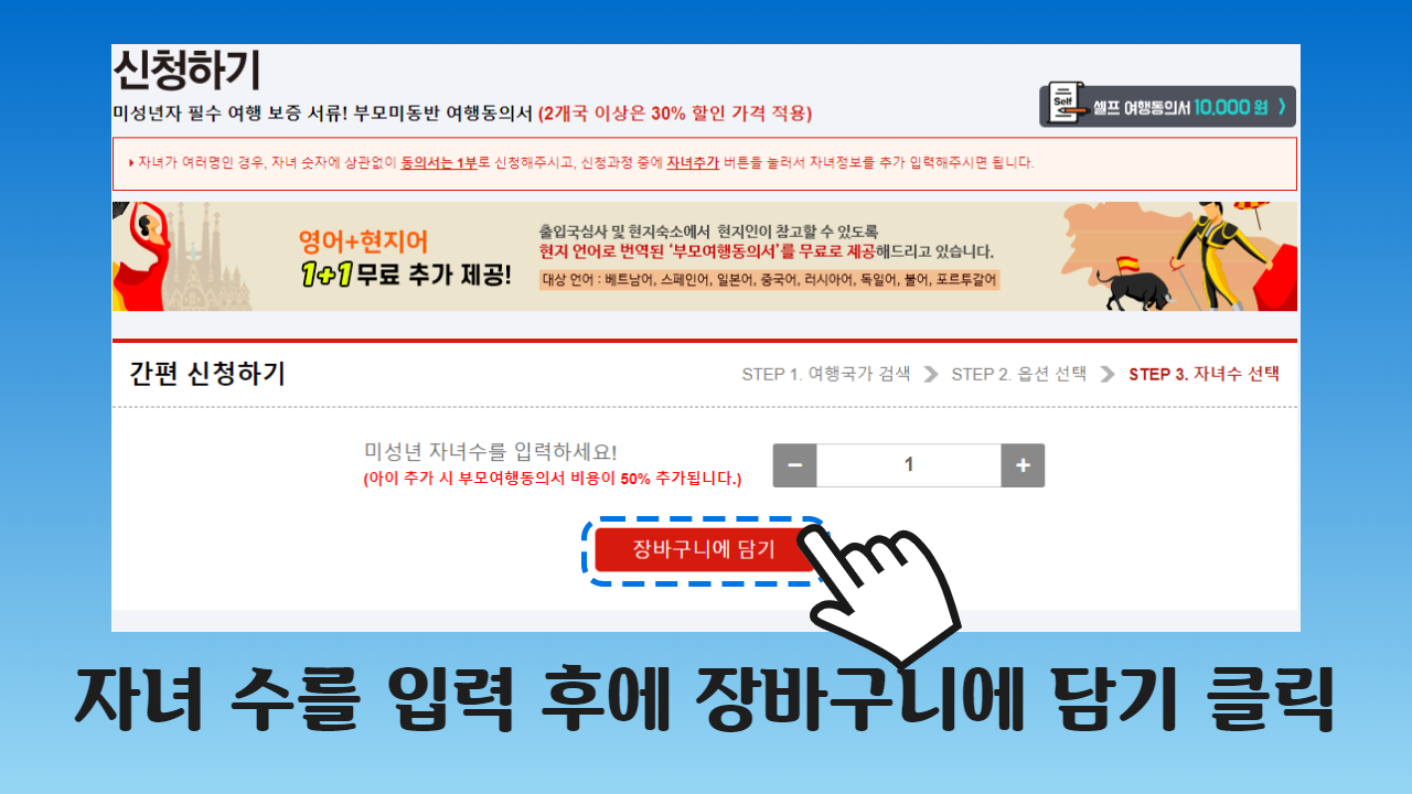 미성년자와 한부모 가정의 부모 1인 동행할 경우(단독 친권인 부모)에는
