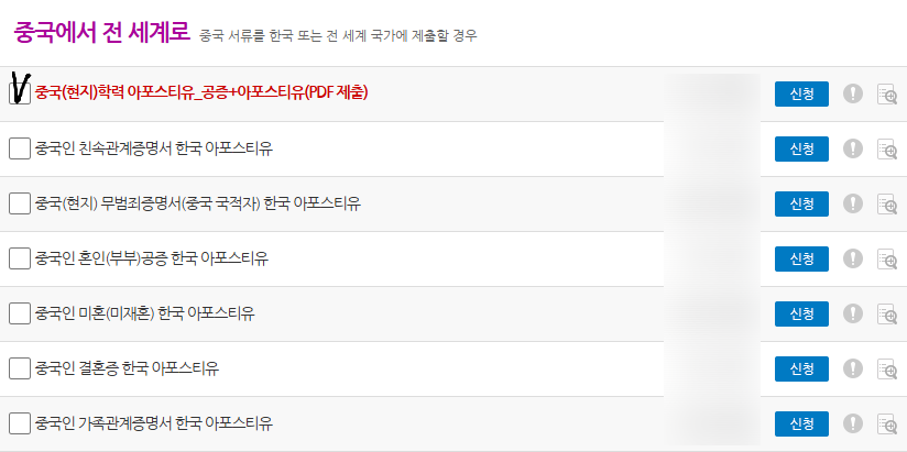저희 한국통합민원센터(주)에서는 중국 졸업장 아포스티유를
